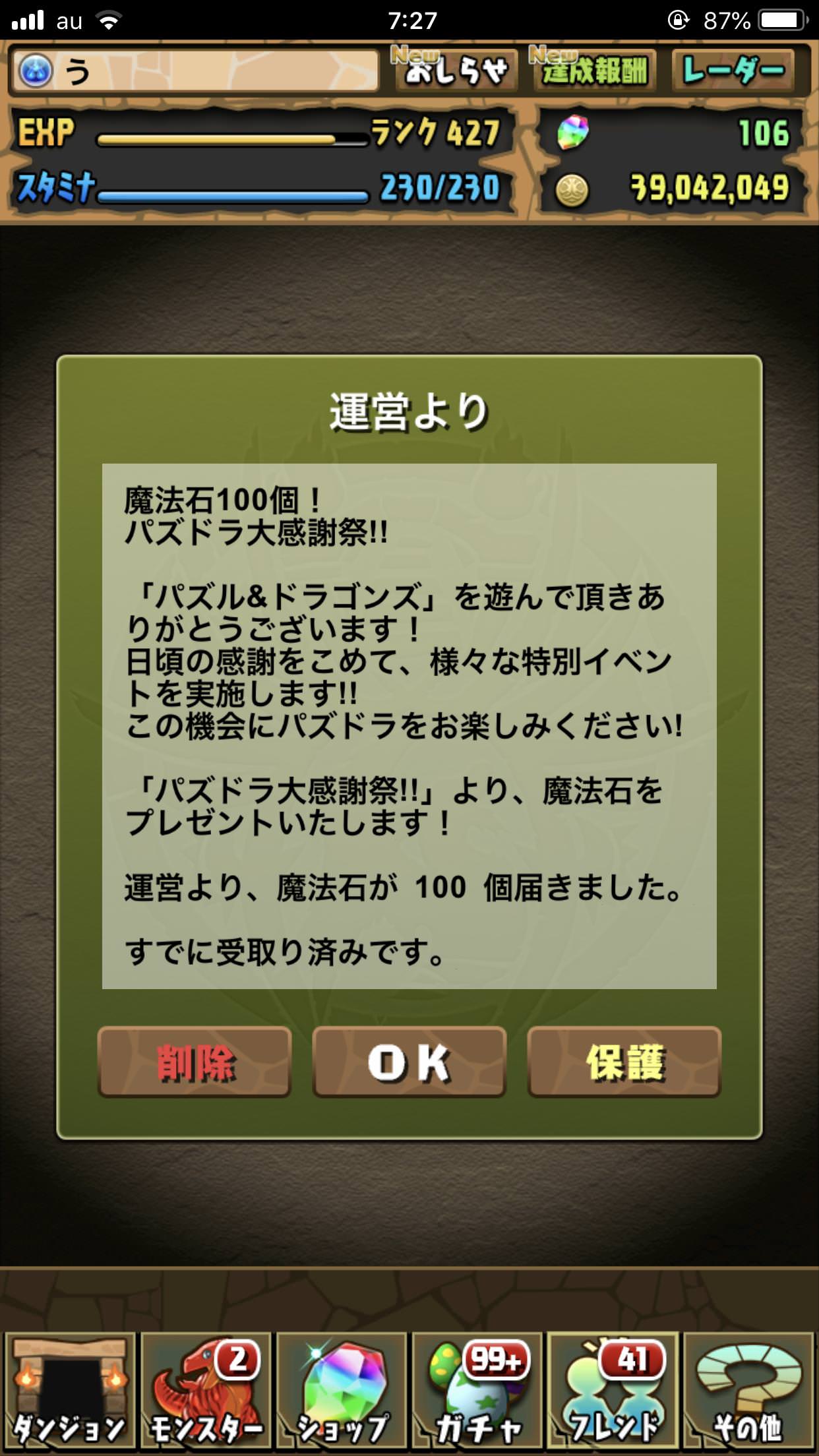 【朗報】パズドラさん魔法石100個プレゼントww
