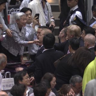大相撲に鈴木宗男、平沢勝栄、金美齢が登場。金はトランプと握手