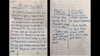スクールバスに乗り遅れ、学校をサボった小学生が母親に宛てた言い訳の手紙(写真)に、全米が大爆笑している。