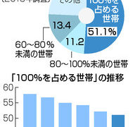 >17年の割合は52.2%。過去増減はあるが、13年の57.8%から微減傾向が続いている。働く高齢者が増えたことが影響しているとみられる。