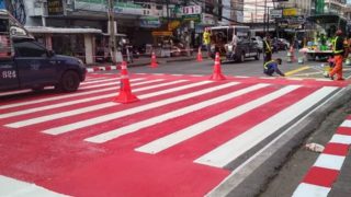 パタヤ)セカンドロードに、目立つ色の新横断歩道