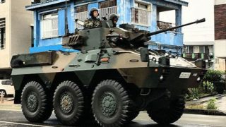 8日午後5時半ごろ、沖縄県浦添市仲西の国道58号の那覇向け車線で、陸上自衛隊第15旅団所属とみられる装甲車が、機銃を進行方向に向けた状態で走行している様子が確認された。