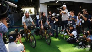 二人は今回の旅を通じ、大会の公式チャリティープログラム「チャイルド・ファンド パス・イット・バック(ChildFund Pass It Back)」のために7万5000ユーロ(約900万円)の寄付金を集めた。(c)AFP