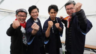 写真撮影では気合バッチリの(左から)藤村D、鈴井、大泉、嬉野D