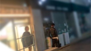 他に人がいないことを確認すると、彼は女性に手招きをし、やっと二人は合流。