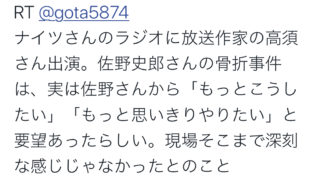 現場は僕ね、ま、そこにはいなかったんですけど、すぐ連絡が入って、でも立ち上がって歩いて行かれて、あれ捻挫くらいじゃない?みたいなやつだったんだけど、びっくりしたよね
