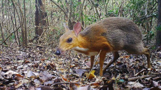 そこで、野生動物保護団体のGlobal Wildlife Conservationやベトナムの研究者で編成された研究チームは、地元の人に聞き込み調査を行い、Silver-backed Chevrotainが出現する可能性の高い場所にカメラを仕掛け、生きているSilver-backed Chevrotainの撮影を試みました。そして、撮影できた写真が以下。