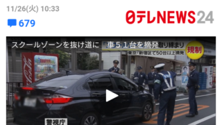 通学時間帯は車両の通行が原則禁止される「スクールゾーン」を抜け道として利用する車両が後を絶たないとして、警視庁は、26日朝、公開取り締まりを行い50台以上を摘発した。