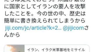 戦争が始まりそうな情勢。でも僕たちは覚えておこう。米国が最初に国家としてイランの要人を攻撃したことを。今の世の中、歴史は簡単に書き換えられてしまうから