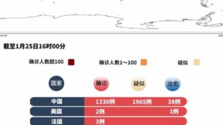 ちょうど1週間前にイギリスの研究者が「現在の感染者は推定1500人、症状が出ると思われる1/25-26の数字に注意が必要」と警告した通りになっとる