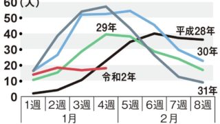 例年、1月下旬〜2月上旬にピークを迎えるが、厚労省によると、今シーズンは目立ったピークも来ていないという。