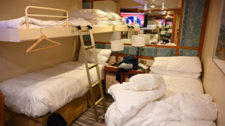 窓がない最下層は波やエンジンの音も響いて相当悪い環境みたいだよ