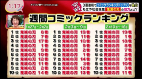 昨年のTVアニメ化をきっかけに人気が急上昇。今年に入ってからは歴代記録更新が続いており、先週3/2付では、「コミック作品別売上記録」で歴代TOP5入りとなる5位を獲得した。