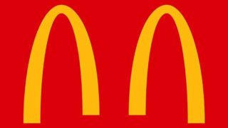 そんなマクドナルドのマークだが、あまりにも衝撃的な展開があった。おそらく史上初、歴史上初、世界初、マクドナルドが公式に「マクドナルドのマークを半分に割る」という衝撃的な展開を実行したのである。
