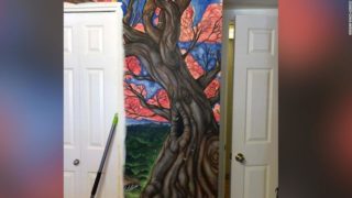 この家に住むシージェイ・ジャックマンさんは、飼い猫の「ジッパー」が寝室の壁をひっかき始めた理由が分からなかった。ところがジッパーが引き裂いた壁紙をはがしてみると、壁一面に描かれた巨大な壁画が現れた。