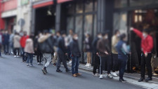 記者はマスクを着用して距離を取りながら、列に並んでいた客に話を聞いた。