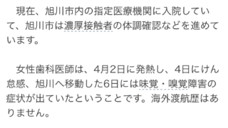 呼吸苦が悪化し、20日に札幌呼吸器科病院に入院して治療を受けた。症状が回復したため、4月3日に転院していた。
