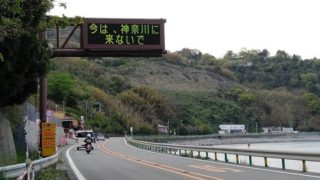 「今は、神奈川に来ないで」(LKM@MOZART_BKさんが22日、国道135号で撮影)