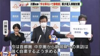 川勝知事「『いまは、来ないで静岡県』みなさま方と末永く交流していくために今は首都圏、並びに中京圏からの静岡県へのご来訪は強く自粛するように求めるものであります」