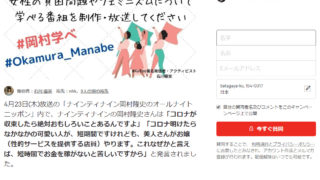 “女性軽視発言をした岡村隆史氏に対しNHK「チコちゃんに叱られる」の降板及び謝罪を求める署名活動が始まりました。