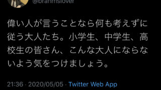 偉い人が言うことなら何も考えずに従う大人たち。小学生、中学生、高校生の皆さん、こんな大人にならないよう気をつけましょう。