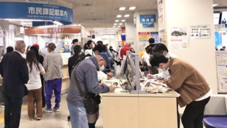 この日、東区役所では午前8時45分の開庁時点で約60人が待機。マイナンバーカード交付までの目安は<20人で150分>と掲示があり、カードの暗証番号の再発行に来た30代女性会社員は「こんなに多いとは」とため息をついた。