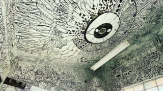 そこから1日かけて壁や天井に白いペンキを塗り、油性ペンで下書きをしない即興アートを描くこと9日間。5月15日に作品が完成しました。