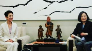 – 蓮舫と、台湾総統・蔡英文との談笑風景。