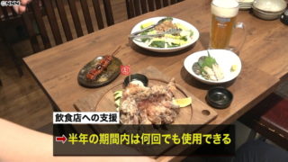 一方、飲食店への支援は、オンライン予約サイトなどを通じ、飲食店の予約をした際に、1回につき最大1000円分、次回以降使えるクーポンが付与され、こちらも半年の期間内は何回でも使用することができるということです。