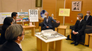 佐賀県が佐賀市日の出一帯で540億円をかけて整備を進める「SAGAサンライズパーク」で、新しい指定管理者に決まった企業グループの幹部らが2日、県庁を訪れ、山口祥義知事と会談した。