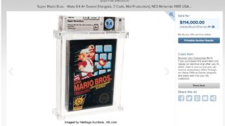 海外版ファミコンNES用ゲームソフト『スーパーマリオブラザーズ』(1985年)の未開封の初期ヴァージョンがオークションに出品され、114,000ドル(約1220万円)で落札。これまでに落札された最も高価なビデオゲームの記録を更新しています。