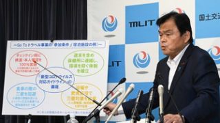 赤羽氏は、東京発着の旅行を対象から除外したのは「他の道府県と比べて特に感染が広がり、感染拡大の中心となっている。断腸の思いだ」と説明。対象追加の判断条件は「感染状況を注視し、専門家の意見を踏まえて適切に検討する」と述べた。