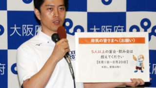 【大阪府】飲み会自粛なぜ5人?吉村知事説明「科学的根拠はないが…4人以内は身近な人」