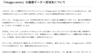 今回のデータ消失は、7月30日にキヤノンがこれらのサービスをコントロールするソフトウェアを新バージョンに切り替える際、