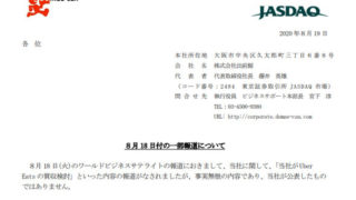 【デリバリー】出前館、ウーバーイーツ買収検討の報道に「事実無根」