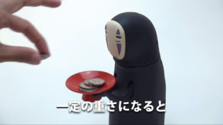 カオナシむしゃむしゃ貯金箱は、カオナシが持っているお皿にコインを置くと、
