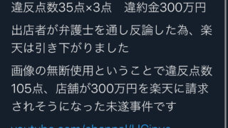 楽天の捏造により罰金を巻き上げられそうになったと騒いでる