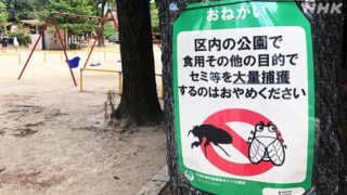 「今月に入って、区民から『食べるために大量にセミをとっている人がいるようだ』といった苦情が数件、寄せられたんです。ただ区としては本当なのか、何も確認できていないのでよくわからないんです。だから『食用“その他の目的で”』『セミ“等”』といったあいまいな書き方をしています」
