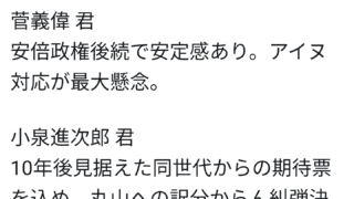 Twitterで菅、進次郎、その他でアンケートしてたわ。