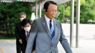 麻生氏は国会や記者会見などの場でも、たびたびマウスシールドを着用してきた。