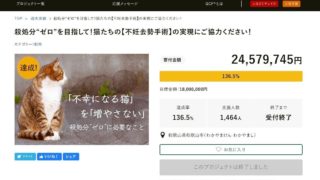 犬や猫の不妊去勢手術するための設備の充実を図るために資金を募集。目標額の1800万円を超える約2500万円が集まっていた。
