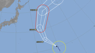 台風の中心は28日午前9時には南鳥島の北東約140キロに達する見込み。中心の気圧は992ヘクトパスカル、中心付近の最大風速は23メートル。最大瞬間風速は35メートルが予想される。