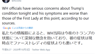 首都ワシントン郊外の米軍医療施設に入院すると明らかにした。トランプ氏はツイッターに投稿した動画で「確実に治るようにする」と入院の理由を説明した。