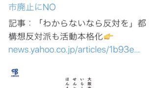 あと大阪都にはならんw大阪市を解体しても大阪府のままや。なのに都構想とか言っているのよwひどい詐欺だよこれ