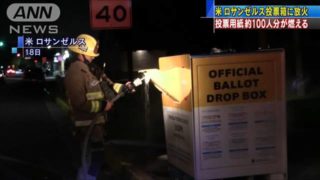 地元メディアによりますと、18日夜にロサンゼルス郊外の公立図書館前で何者かが投票箱の中にあった投票用紙を燃やしました。この人物の行方は分かっていません。燃やされた投票用紙は60人分から100人分とみられ、選挙当局がこの日に投函(とうかん)した有権者を探し出し、連絡を試みているということです。ロサンゼルスでは共和党が独自に非公式の投票箱を設置するなど、投票を巡る混乱が続いています。