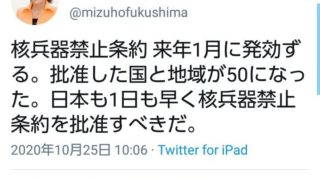 批准した国と地域が50になった。日本も1日も早く核兵器禁止条約を批准すべきだ