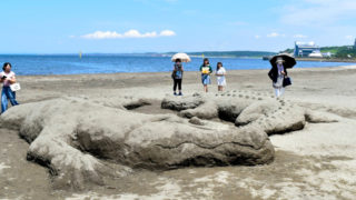 青森県鰺ケ沢町の海水浴場に今夏、突然姿を現して話題となった巨大ワニのサンドアート。謎に