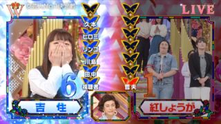 Aブロックを制したお笑いコンビ「紅しょうが」とBブロックを勝ち抜いたピン芸人・吉住が、最終決戦を行い、吉住が4代目女王に輝いた。「こんな明るいところに出る芸人じゃない」と号泣した。