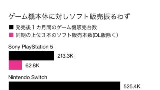 これまでのところPS5のタイレシオは3台に対し1本という水準にとどまっており、転売屋による買い占めの証左となっている。
