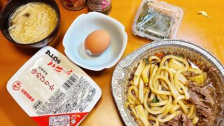 サトウのごはん1個でカップヌードルが買えることを考えたら鍋焼うどんとレトルトごはんはかなりコスパが悪いのがわかるだろ。ジャンキーではあるが、質素とは程遠いメニューだよ。